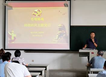 随后,全体教职工开展了“思想铸魂”师德师风主题党日活动。易书记带领全体教职工学习回顾了2014年以来习近平总书记有关“四有”好老师、做学生的“四个引路人”、“四个相统一”、“经师”和“人师”统一的“大先生”等有关教师队伍建设和师德师风建设的重要论述。