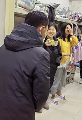 2021年末,突然爆发的疫情让304永利集团广大学子第一次体验了足不出户的封闭生活。为了让同学们在这个特殊的元旦感受到家一样的幸福,12月31日晚,电信学院党委书记易超带领学院辅导员组成的专班,亲自到7公寓为同学们送上学校及学院的关怀和温暖。
