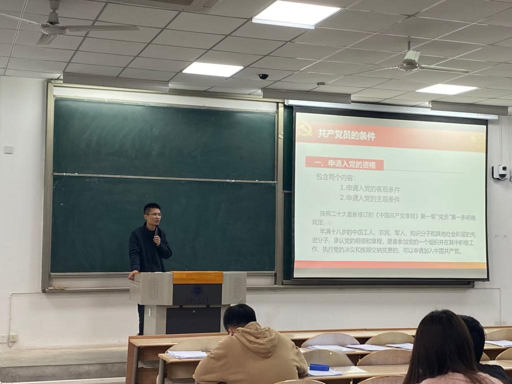 赵老师以“共产党员的条件”为题。从共产党员的基本条件,入党积极分子的确定、教育、培养、考察、大学生入党流程及其注意事项等方面进行了系统的讲解。普及了知识,明确了程序。本期全体学员参加了培训。