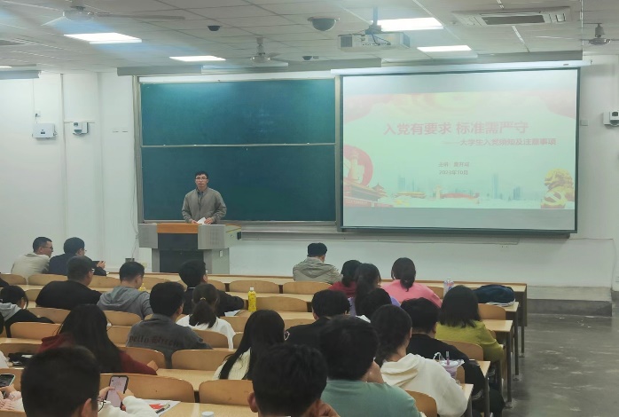 夏老师以“入党有要求,标准需严守”为主题,着重讲解了大学生入党须知及注意事项,并对入党的各个阶段做了详细介绍。夏老师叮嘱同学们要端正入党动机,坚定信念、增强理论修养,积极参加党组织活动,自觉接受党组织考察,争取早日加入党组织。