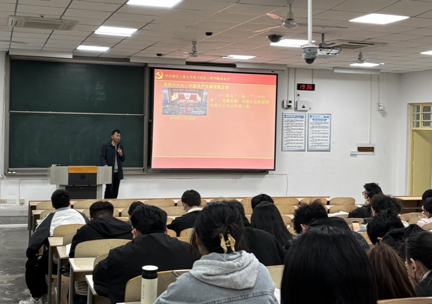 为深入学习贯彻落实党的二十大精神和二十届三中全会精神,落实新时代党的建设总要求,提升入党积极分子的思想觉悟和理论素养,我院分党校举办第70期入党积极分子培训班。培训班于3月27日在教1-203室举行开班式暨党课第一讲。学院党委书记易超出席开班式做学习动员并讲授第一课,学院党委组织员冯倩主持,我院123名本科生、研究生入党积极分子参加。