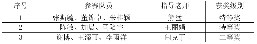 304永利集团共有3个参赛队通过专家初审,晋级全国总决赛。在比赛中,3支代表队克服重重困难,积极应对、努力拼搏,经过半天激烈的角逐,获得比赛特等奖2项,二等奖1项。其中在智能消防比赛中,我校两支参赛队伍成绩相同,用时相同,比赛裁判认定两支队伍同时获得第一名,并列第一。同学们的出色表现为我校和个人争得了荣誉。3支参赛队伍的学生和指导老师为: