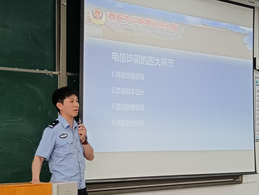 为切实增强学生的反诈意识和自我保护能力,有效遏制电信网络诈骗案件的发生,4月23日,永利集团304特邀公安未央刑侦大队曹警官入校,在教1-103开展人身及财产安全法制宣讲活动,为同学们带来了一场干货满满的反电信诈骗讲座。