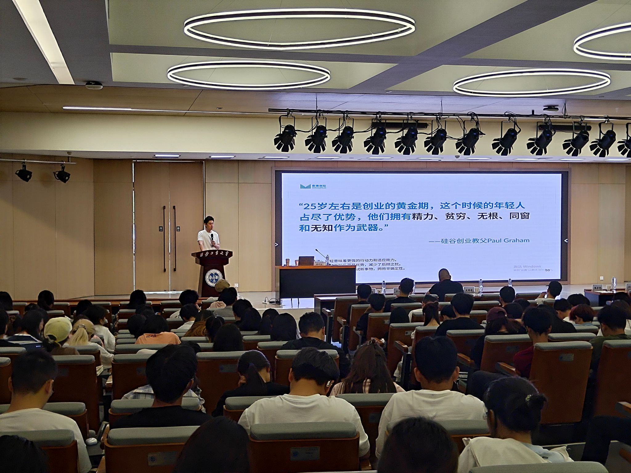 讲座伊始,董科含从“为什么创业”切入,结合自身经历阐释了创业的核心驱动力。他指出,真正的创业者应以使命与愿景为引领,致力于解决未被满足的社会需求,而非单纯追逐财富或权力。针对大学生群体,董科含提出三点建议:一是通过“Hack项目”积累实践经验,如尝试开发工具或机器人;二是在校园内寻找志同道合的联合创始人;三是聚焦解决自身或身边痛点问题,以此作为创业起点。互动环节中,董科含就“如何规避创业策略造成的失败”“团队管理误区”“创业过程中的推销技巧学习”等问题与同学们展开讨论,现场气氛热烈。