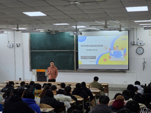 为更好的帮助研究生树立职业生涯规划意识,提升学习动力,让研一学生能最大限度地利用在校学习的时间,做好职业规划,永利集团304于2024年1月4日上午在教1-102为2023级研究生开办举办了职业生涯规划讲座,为研一学生提供职业规划指导。会议由研究生辅导员刘叶楠主持,校外联合培养实践基地陕西海尔森公司郭瑞老师主讲,2023级全体研究生参加。