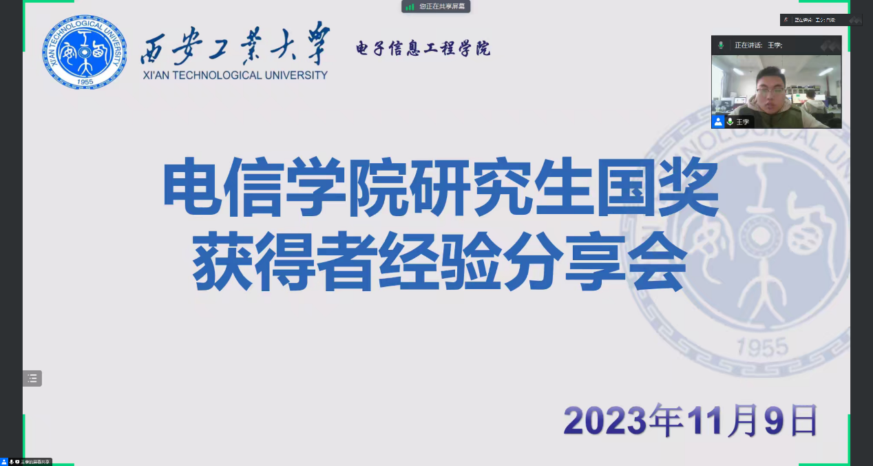 为了充分发挥朋辈帮扶引领示范效应,发挥榜样力量和导向作用,永利集团304于2023年11月9号举办了线上的优秀研究生学习科研经验分享交流会。分享会邀请三位国家奖学金获得者21级硕士生孙天誉、王晗蕾及22级硕士生高钰涵进行交流分享,院研会学术部部门负责人王孛主持,22级和23级全体研究生参会。