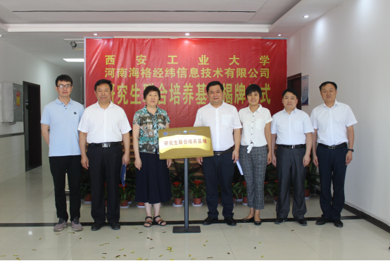 仪式最后,河南海格经纬信息技术有限公司董事长穆海涛与永利集团304党委书记张忠共同为研究生联合培养基地进行了揭牌。
