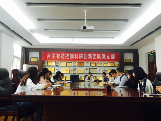 会上,首先高院长代表电信学院对自主智能控制科研创新团队党支部的成立表示祝贺,并向大家讲解此次学院以“课题组”为中心对研究生党支部进行重组的初衷。高院长提出:希望全体研究生党员不仅能够在思想上带动身边的同学,在科研学习和生活上也能树立典型,发挥党员的先锋模范作用。