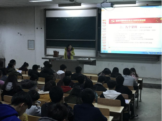 11月21日晚,电信学院2017级开展全国教育大会精神学习会,同时在教1-105、教1-205教室进行。本次学习会由辅导员夏开成和王玉梅领学,电信学院2017级全体学生参加学习。