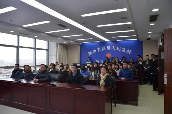 来到省高院之后,法院工作人员对整个活动的安排,以及省高院的组织架构、整体布局做了简短的介绍。随后,在法院工作人员的带领下,全体师生参观了审判场所,并在中法庭旁听了一起国内某著名白酒生产厂商与延安某烟酒副食品门市部“知识产权纠纷”的案件审理。通过工作人员的讲解,以及审判长的讯问,上诉人与被上诉人双方的辩论,同学们站在第一视角,亲身感受法院的审判过程。紧接着,全体师生参观了省高院执行指挥中心,工作人员详细介绍了执行指挥中心大数据决策分析系统,特别是“五大执行分析系统”和“三大平台”的讲解,使师生深刻认识到了“互联网+”时代执行指挥中心的智能化和便捷化。随后,跟随工作人员参观了省高院图书馆,据介绍,图书馆馆藏丰富,有政治理论、四库全书、精品典藏、宪法民法、刑法刑诉、国际法等2万余册书籍,同学们表示可以了解到许多法律知识。最后,师生们来到省高院诉讼服务大厅,工作人员详细介绍了诉讼服务、立案调解等诉讼服务大厅窗口的设置及工作内容。整个参观学习过程中,师生认真倾听,细心学习,充分了解了法院的相关工作流程和法律知识,对于法律的权威性与严谨性有了深层的认识,树立起应有的法制观念。