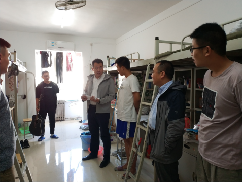 检查过程中,副书记王利军多次提醒学生注意季节更替及气候变化,树立有难题找辅导员、有难题找学院解决的意识,并鼓励部分学业困难学生刻苦努力,用付出与汗水赢得尊重。检查结束后,所有参检人员齐聚一公寓辅导员工作室,分析汇总了各年级学生宿舍存在的问题,并就下一步如何查漏补缺进行了意见交流。