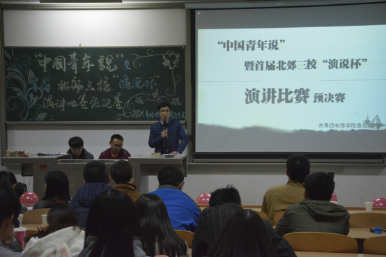 瑟瑟的秋风,阻拦不住同学们的激情;闪烁的星辰,照耀着同学们青春的脸庞。在2016年11月20日晚上6时许“中国青年说”首届北郊三校“演说杯”演讲比赛预决赛1-203正式拉开序幕。莅临本次比赛的嘉宾有光电学院团委书记李睿老师,电信学院团委副书记夏开成老师和张国豪校团委宣传部副部长邓瑞祥机电工程学院团委副书记冯潇晨材料与化工学院团委副书记张朋辉人文学院团委副书记梁安慧。电信学院团委学生会各部门部长及干事参与。