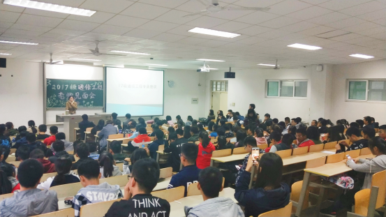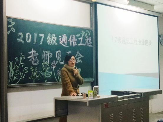 为了让同学们能更好的理解通信工程这门专业,增加同学们对专业的的兴趣,学院特意组织了这次专业老师见面会。2017年11月1通信工程专业老师与新生见面会在教二305教室准时开始。电信学院通信工程系华翔老师、雷斌老师、董绵绵老师、杜岳涛老师、张峰老师、杨永侠老师等8位老师参加,2017级通信工程专业全体学生参加此次见面会。