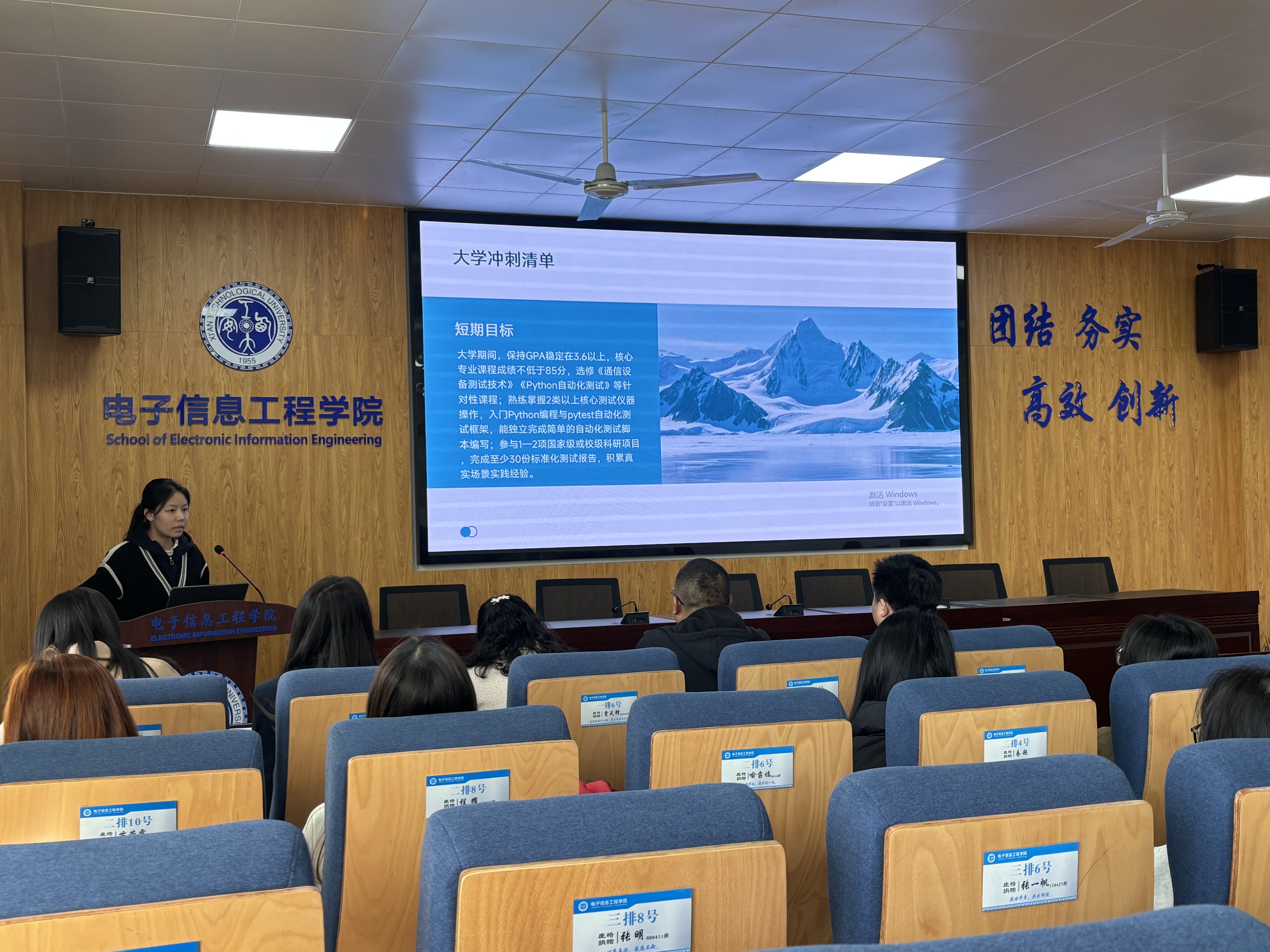 本次大赛以“规划青春赛道 筑梦电子未来”为主题,吸引来自全院各年级九百余名学生报名参与。经过前期资料初筛与探讨评审,最终16名选手脱颖而出进入院赛决赛。在比赛现场,选手们通过PPT汇报、现场答辩等环节,从自我认知、职业认知、职业目标与路径规划、评估与调整等方面进行了精彩展示。他们结合专业特色,聚焦人工智能、通信工程等电子信息领域前沿方向,展现了新时代电子学子对职业发展的深度思考和清晰规划。